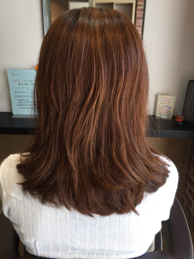 カラーは8レベルのブラウンに6レベルのピンクを混ぜて少し秋らしい雰囲気に。