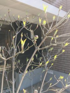 Bereaの入り口の前にあるハナミズキのつぼみが少しづつ膨らんできました。