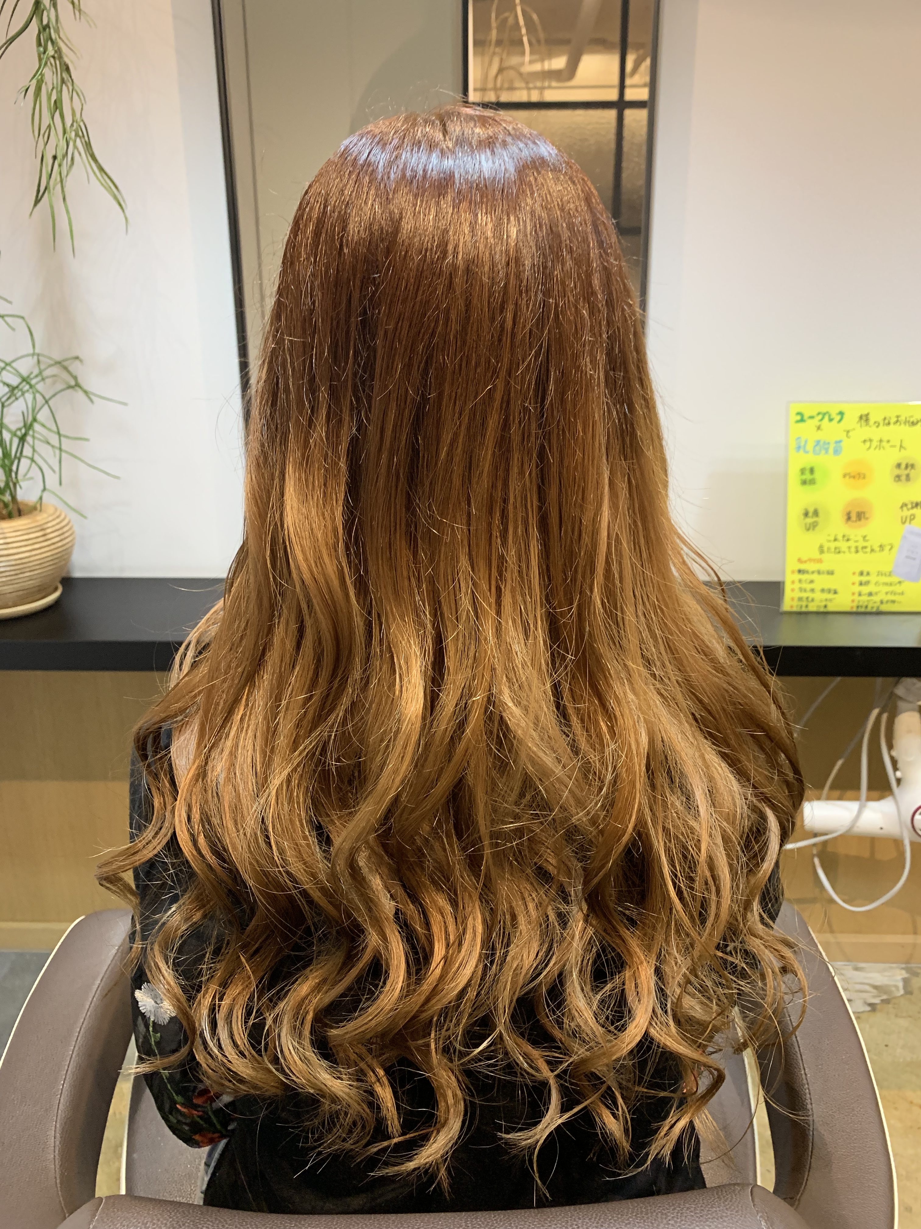 この間先輩スタイリスト藤城さんのお客様のコテ巻きをさせて頂きました。