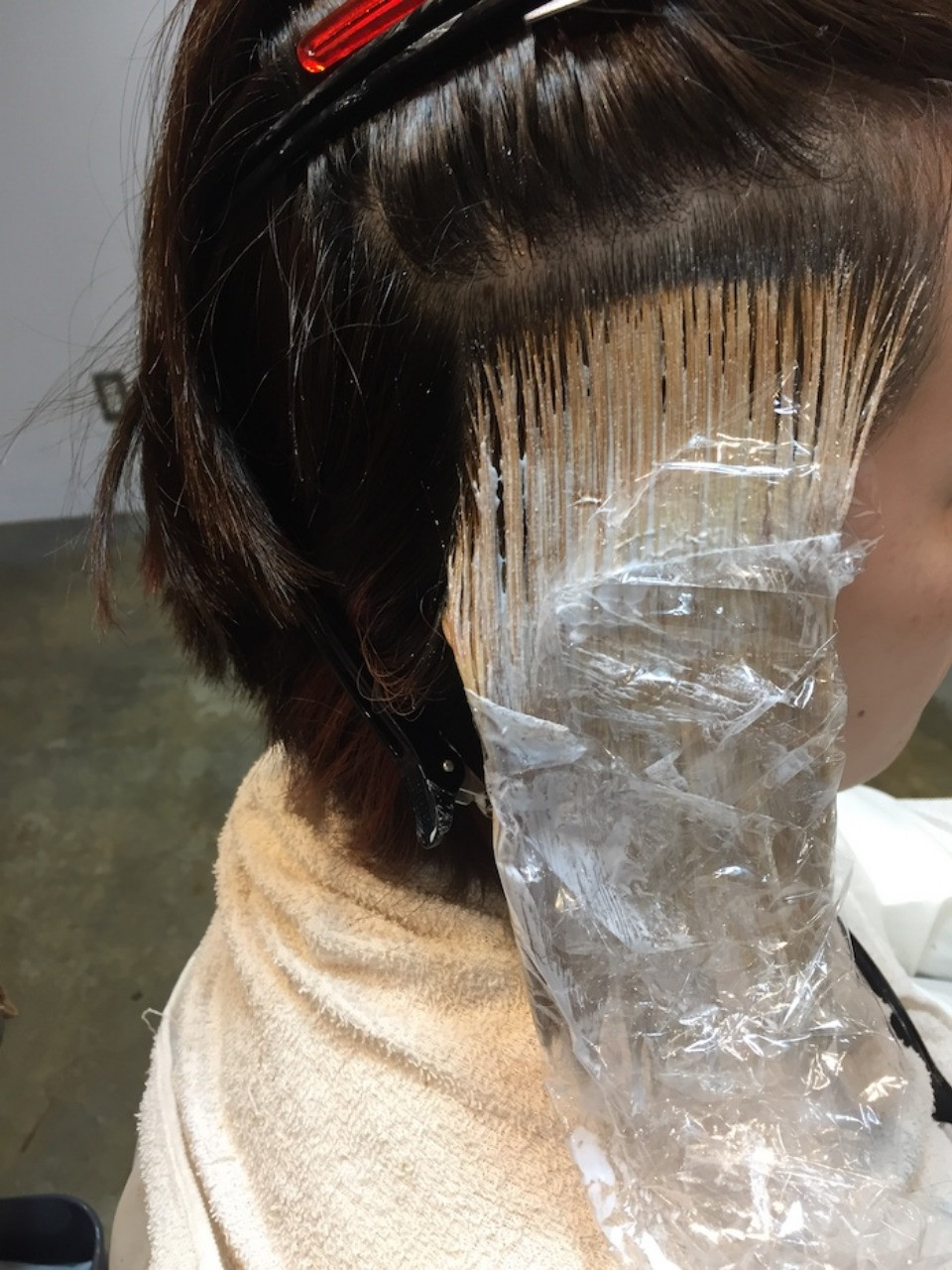 今回は、ボブスタイルのサイドのみをしっかりブリーチ!!!
