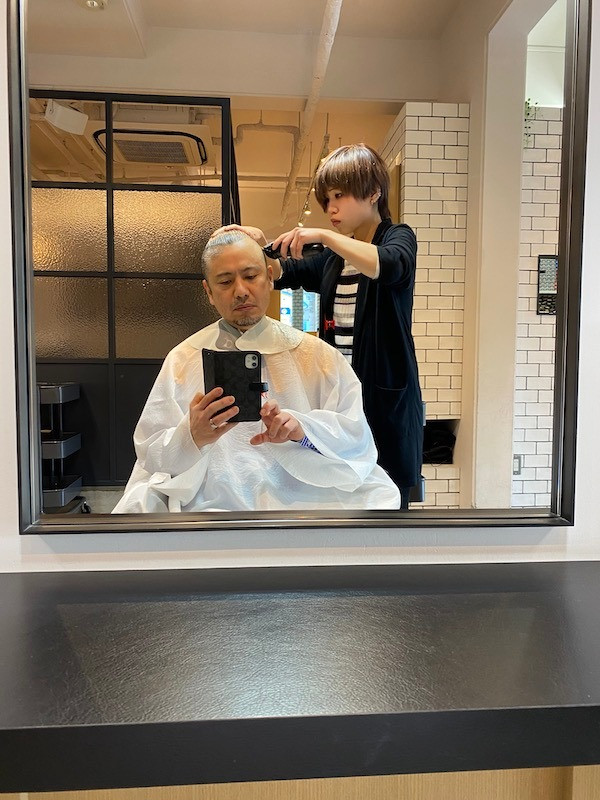 スッタフの高木さんは、いつも私の髪をバリカンでカットしてくれます!