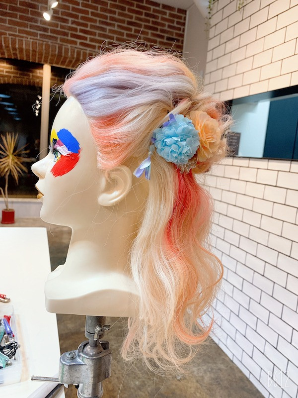 ハーフアップにすることで、全体的に派手になりすぎず多種多様な服と合わせやすいと思います(*'▽'*)
