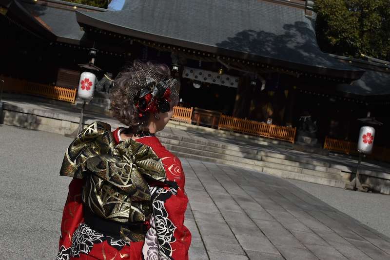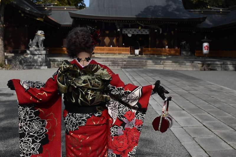 提携している着物屋さんで着物を借りて、友達に着付けをしてもらい撮影してもらいました(*'▽'*)