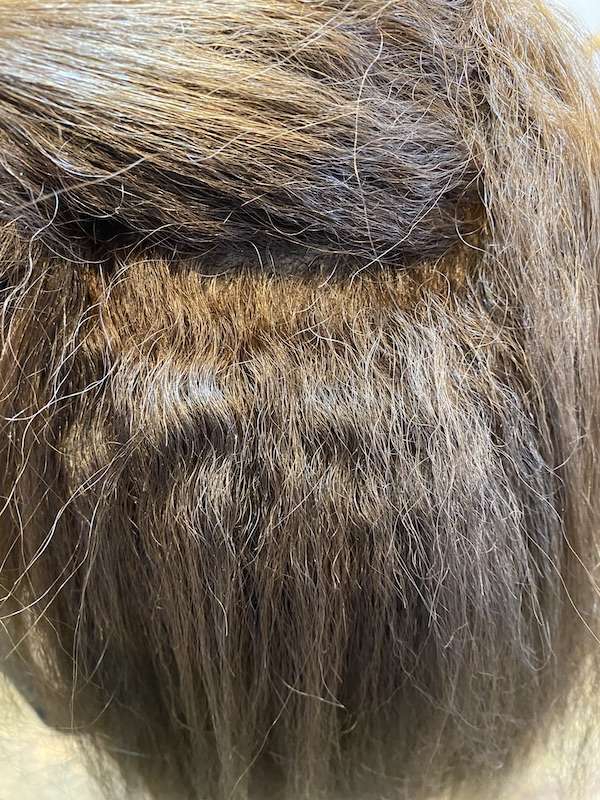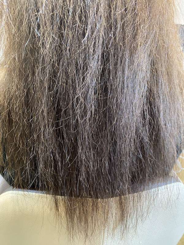 その為に毛先は弾力が無くなり、硬い質感でパサつきがあります。