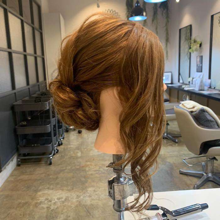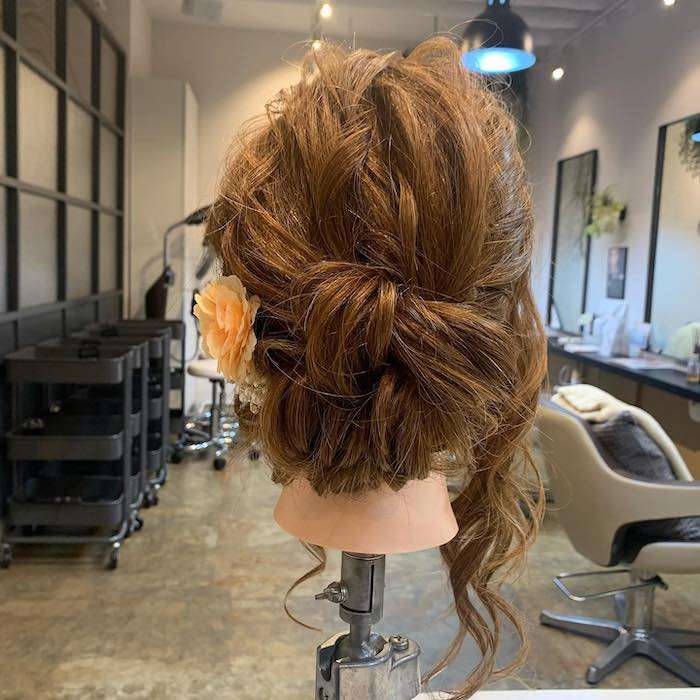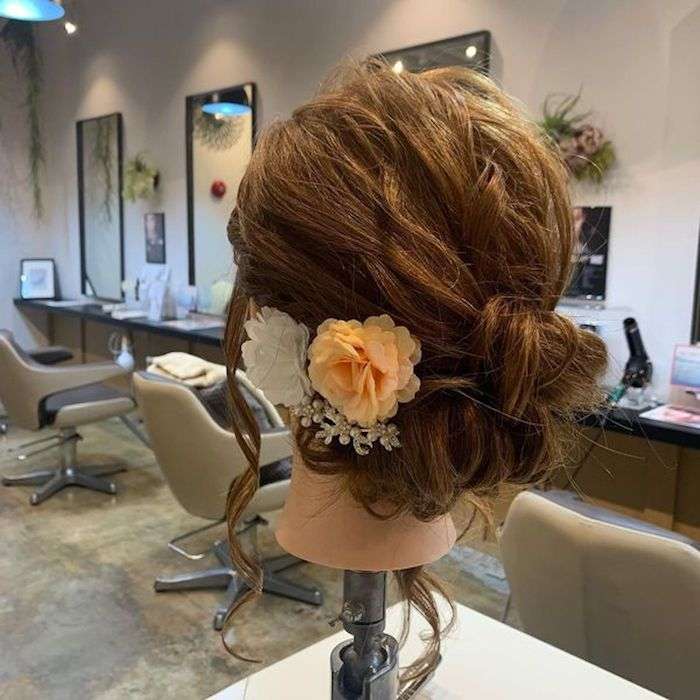 トップの髪はカールをつけ動きを出してゆるふわな女性らしいスタイルに仕上げております( ^ω^)お呼ばれや、