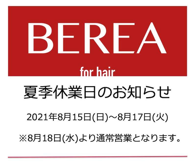 2021年お盆休みのお知らせ!姫路市の美容院BEREA(ベレア)はお客様のキレイを叶える美容室/ヘアサロン
