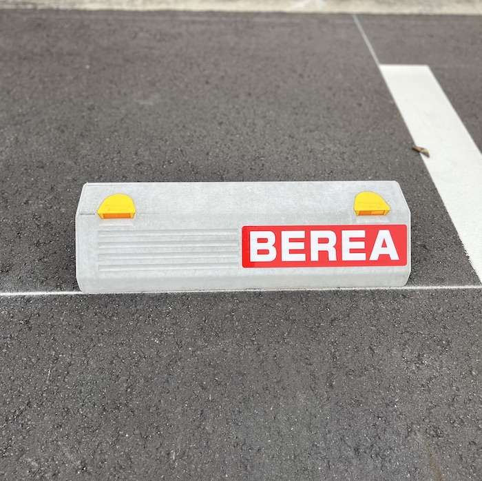 車止めに赤いBEREAのステッカーを貼っていますので、お間違えのないようお願い致します。